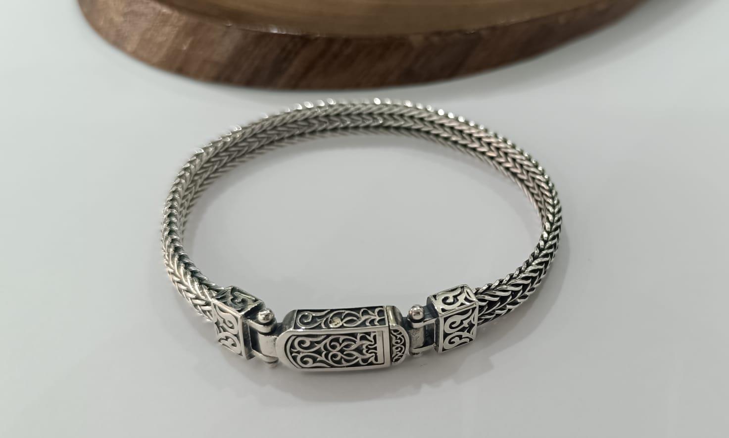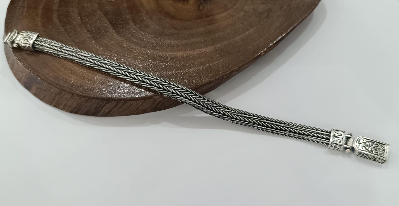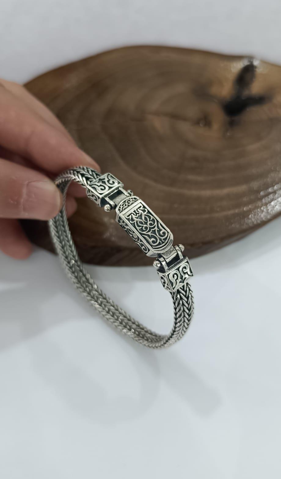 Erkek Bileklik 925 Ayar Gümüş Bileklik Midyat Hasır Modeli Bilezik BLK-421