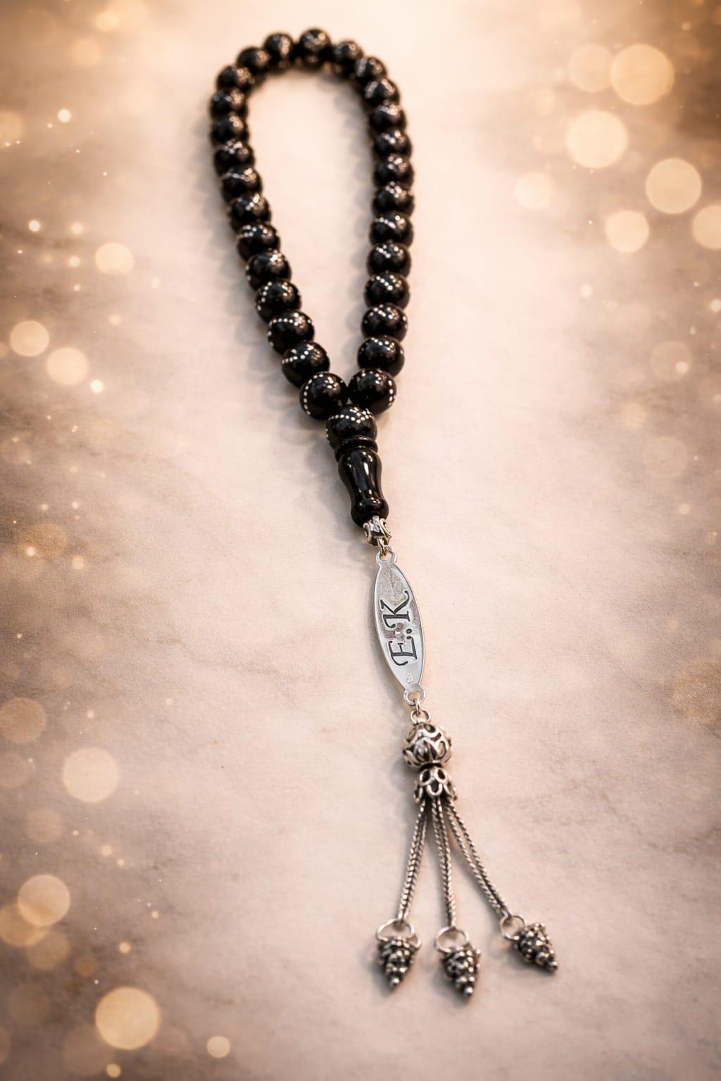 Kişiye Özel İsimli Rus Oltu Taşı Gümüş İşlemeli İsimli Tesbih TES-89