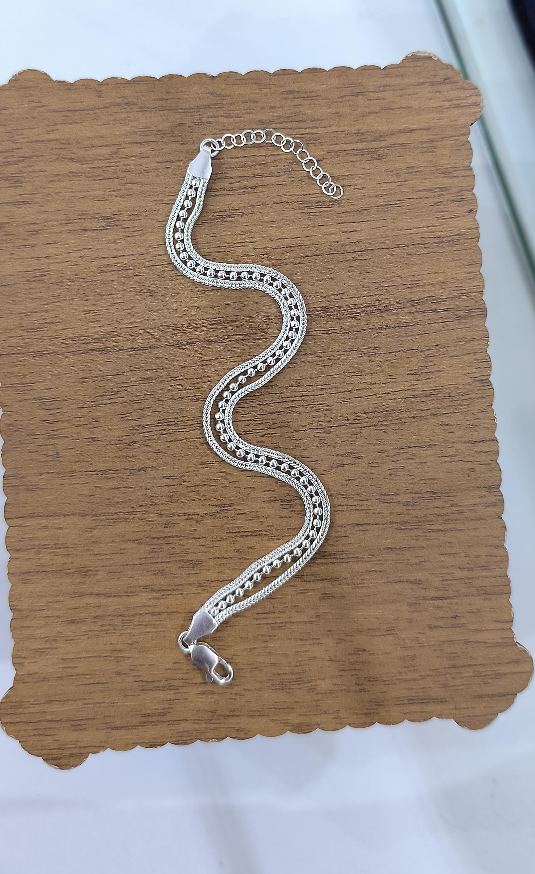 Midyat Hasırı Zincirli Gümüş Bileklik BLK-422