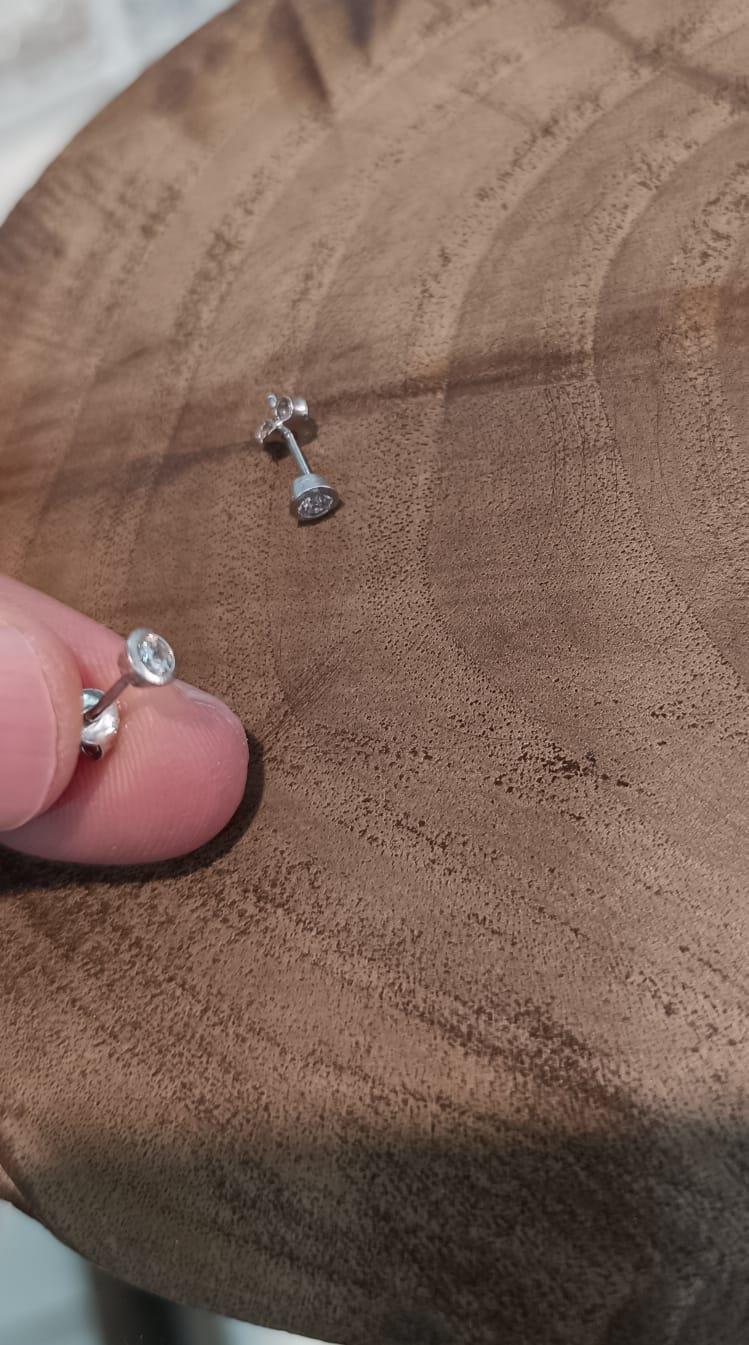 Tek taşlı vidalı gümüş, küçük bayan küpesi.