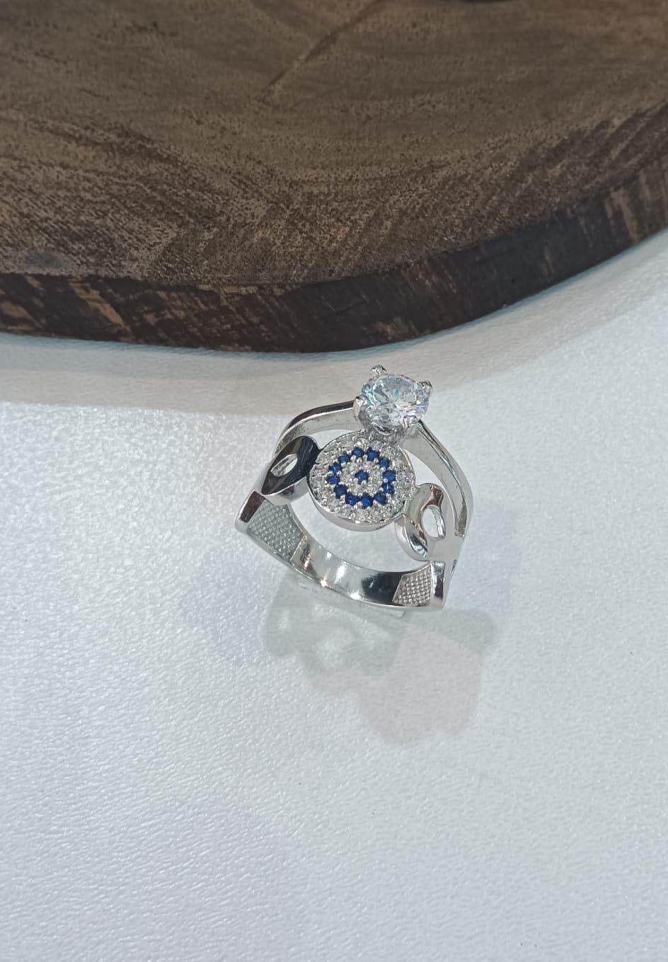 Yüzük Hakkında: Tek taşlı nazarlıklı, gümüş bayan yüzüğü;
