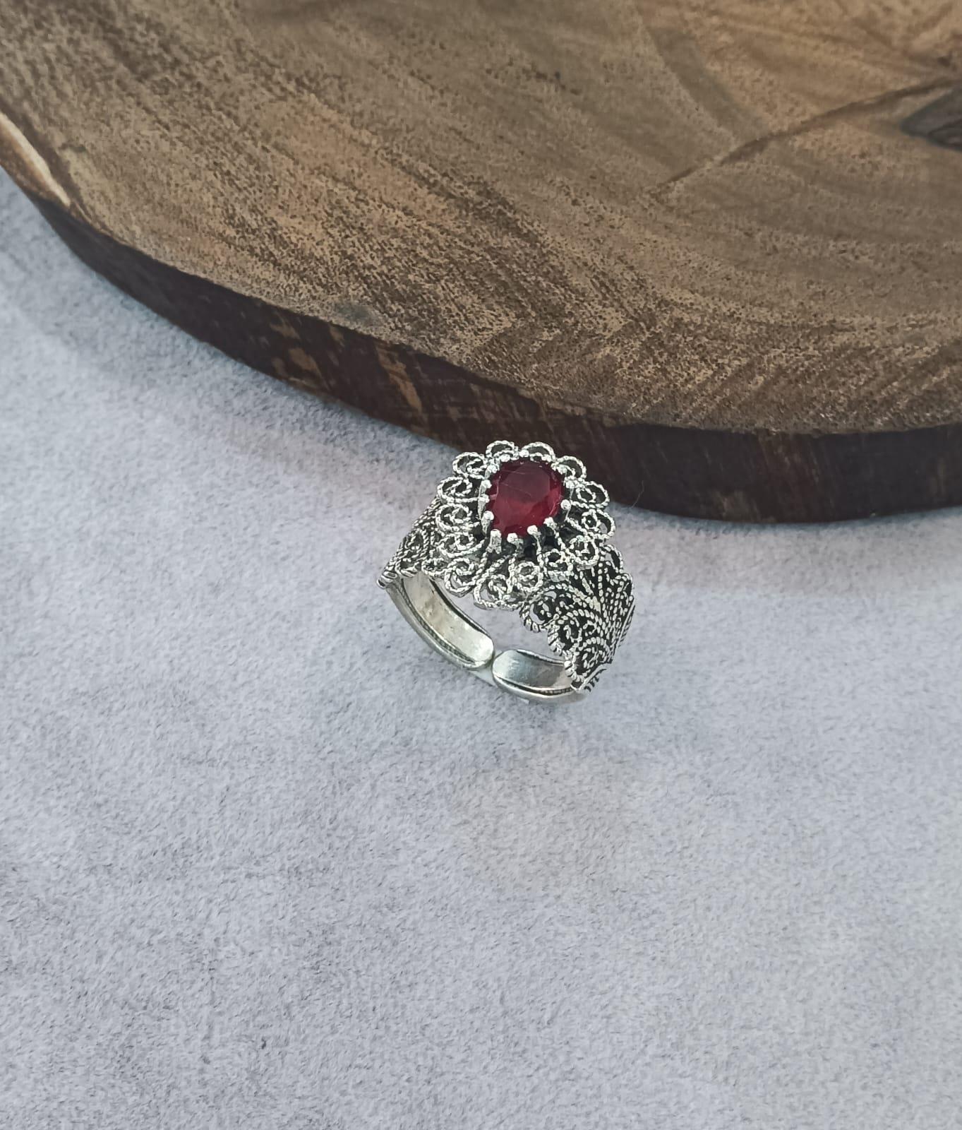 Telkari Gümüş Yüzük Yakut Taşlı Bayan Yüzüğü YZK-429